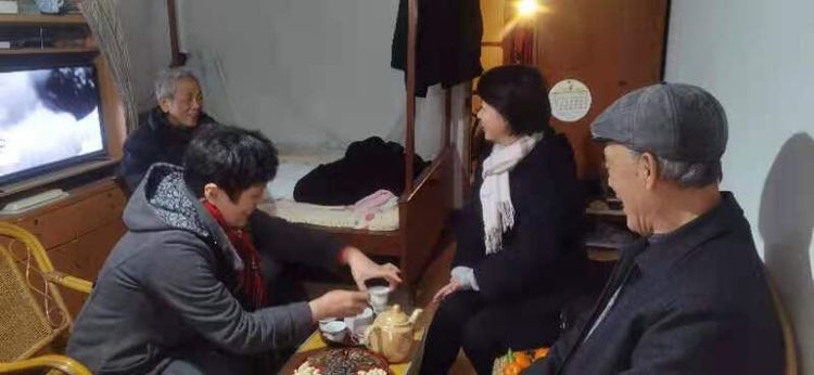 领导、工会委员、退休支委及退协委员分五组前往病困、独居老同志的家中或养老院进行元旦、春节慰问,这是慰问郭廷惠老师。