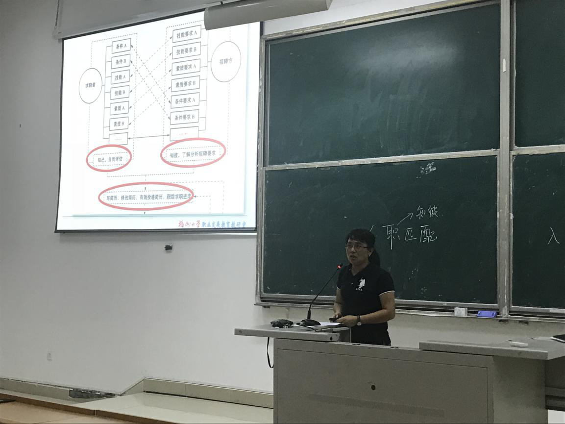 的可持续就业。在谈及如何择业问题,许老师着重强调了“人职匹配”原则,人职匹配讲究的是知彼知己,了解自己,探索职业世界,最后进行最佳匹配。择业不应该单单考虑薪资问题,择业如择偶,“最合适的才是最好的”;接着,许老师介绍了如何撰写简历以及制作简历的注意事项。最后,许老师介绍了面试技巧问题。许老师不仅介绍了面试的类型,并介绍了如何准备面试等技巧,干货多多。