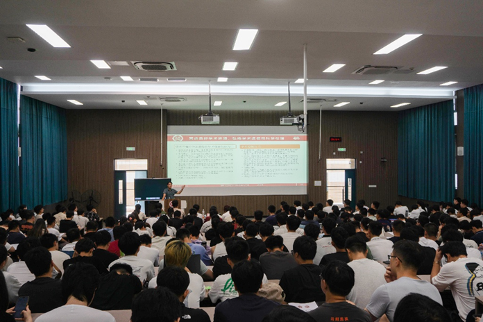 进一步强化价值引领。9月16日下午,党委副书记杜领军老师为全体新生带来题为 “坚定理想信念,勇担时代使命” 的专题报告,将新生入学教育的思想内涵提升到新的高度。