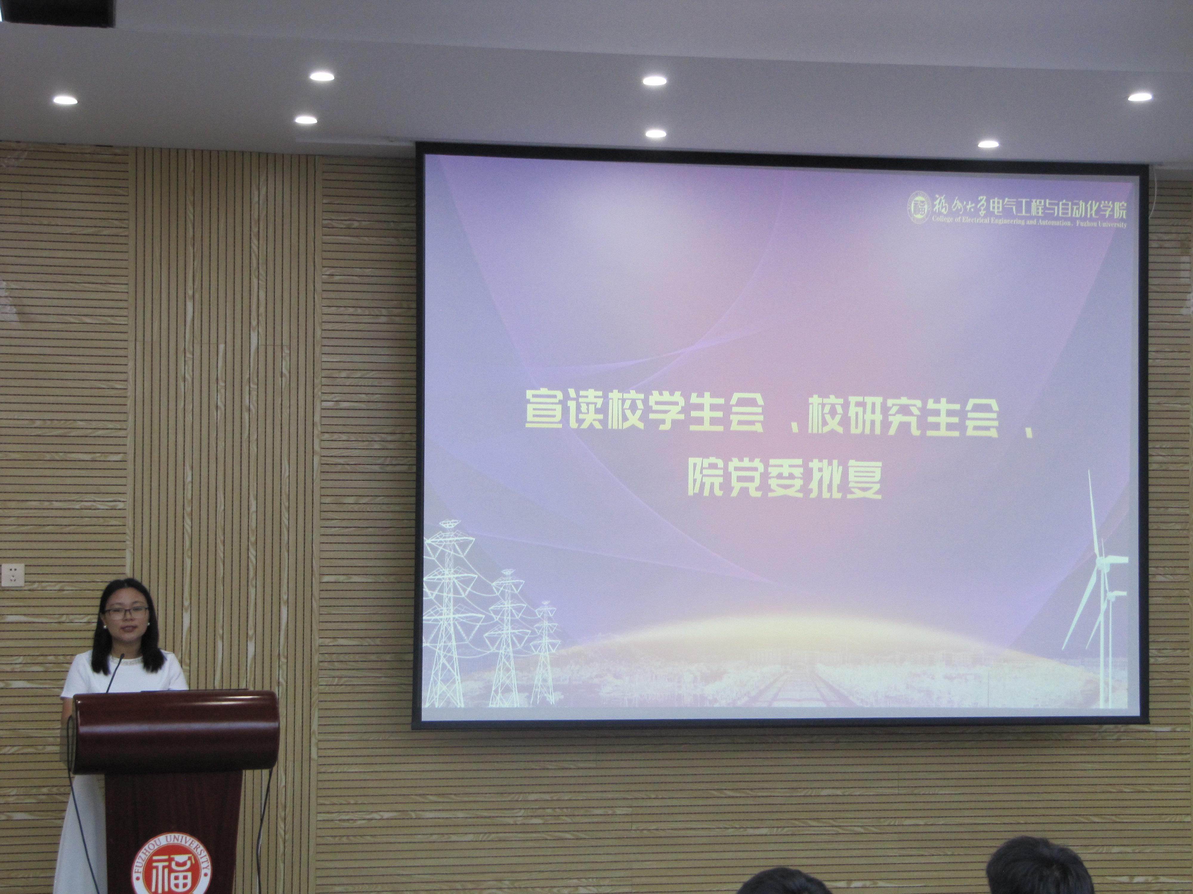 院团委副书记梁艳华宣读校学生会、校研究生会、院党委批复