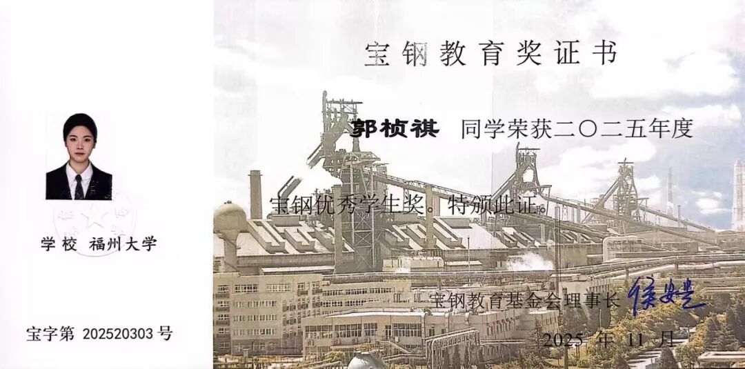 2022级本科生郭桢祺凭借全面优异的表现获评“大学生年度人物”及宝钢优秀学生奖。她以理想为帆、以实干为桨,在学业深耕、科研探索、志愿服务与体育锻炼的多元成长中步履不停,用奋斗书写新时代青年的责任与担当。她的先进事迹生动诠释了“有理想、敢担当、能吃苦、肯奋斗”的青年风采,激励着广大学子以榜样为镜,砥砺奋进、逐梦前行。