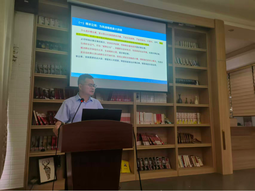 副院长刘有升教授作《为人民出政绩 以实干出政绩》的专题辅导报告。av直播