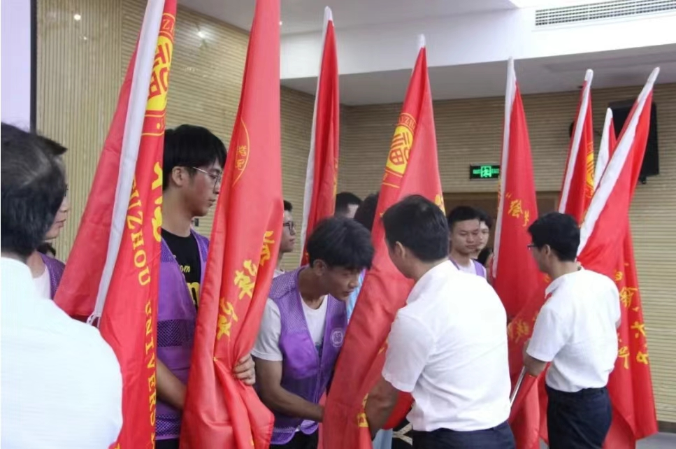 2024年暑期“三下乡”社会实践15支重点队伍学生代表授旗。红旗飘飘,扬帆起航,朝向党和人民需要的地方进发,预祝本次暑期“三下乡”社会实践圆满成功!