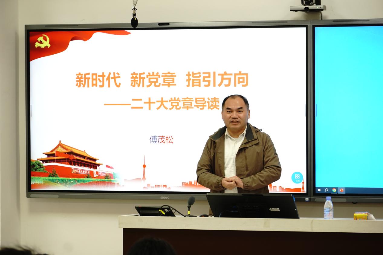 1月4日,数字技术管理办公室主任傅茂松副研究员为学员们带来了培训班的第一场专题辅导报告,主题为“新时代 新党章 指引方向—党章导读”。傅茂松老师的报告以精心准备的PPT为蓝本,内容详实,逻辑清晰,讲解深入浅出。他首先从“引言”部分阐述了党章的地位、作用和学习党章对于入党积极分子的极端重要性。随后,他分三个主要部分展开讲解:在“党章含义”部分,深刻解读了党章作为党的总章程和根本大法的权威性、严肃性;在“党章概况”部分,简要梳理了党章的发展历程,介绍了党章的框架结构和核心内容;在“二十大党章总纲及具体条文学习”部分,重点结合党的二十大最新修订的《中国共产党章程》,对其总纲部分所确立的党的性质、最高理想和最终目标、指导思想、新时代新征程的使命任务、社会主义初级阶段基本路线等内容进行了系统阐释,并对党员的义务和权利等条文进行了详细解读。最后,在“寄语”环节,傅老师勉励全体学员要以此次学习为新的起点,持续深化对党的认识,不断端正入党动机,自觉用党员标准严格要求自己,在实践中锻炼成长,努力向党组织靠拢。