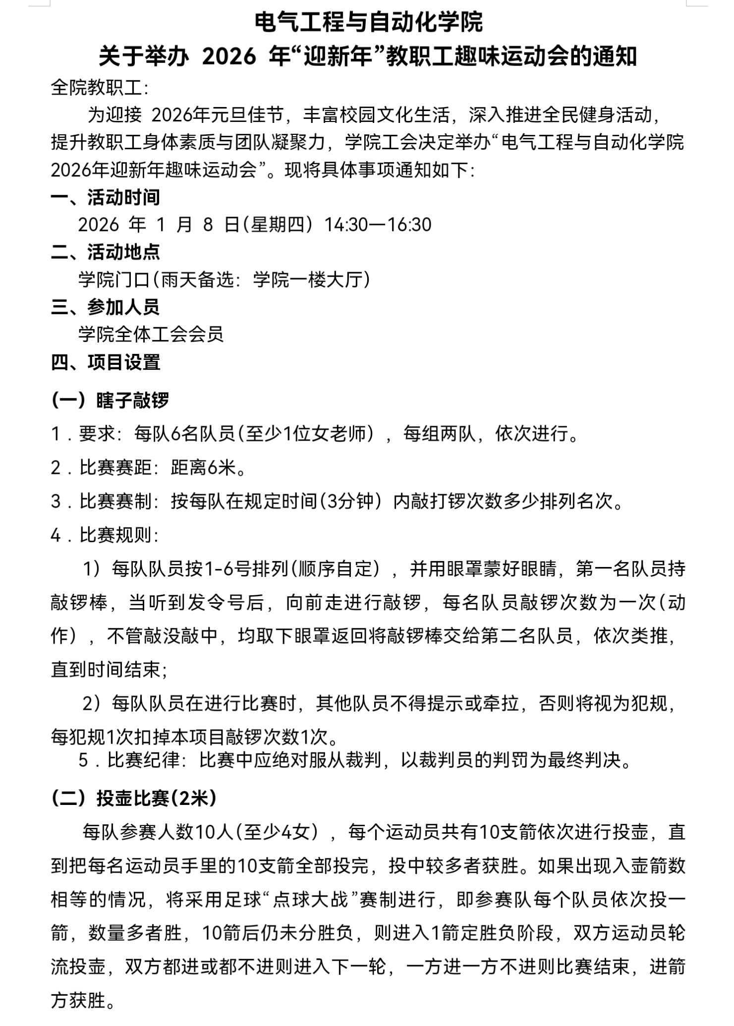 av直播 关于举办 2026 年“迎新年”教职工趣味运动会的通知