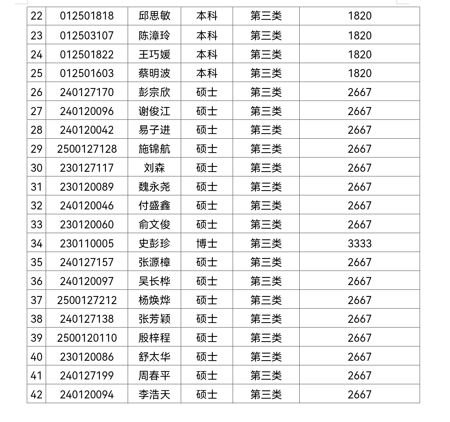根据《av直播 学费减免实施办法》(修订)(福大学[2017]109号)文件要求,经同学申请,av直播 资格审核,并经av直播 奖助学金评审委员会评审。现av直播 奖助学金评审委员会拟同意毛威威等42名同学学费减免的申请。现将拟同意申请人员名单公示如下,公示时间为2025年12月30日-2026年1月4日,在此期间若对上述名单存有异议,请及时予以反馈给各年级辅导员。