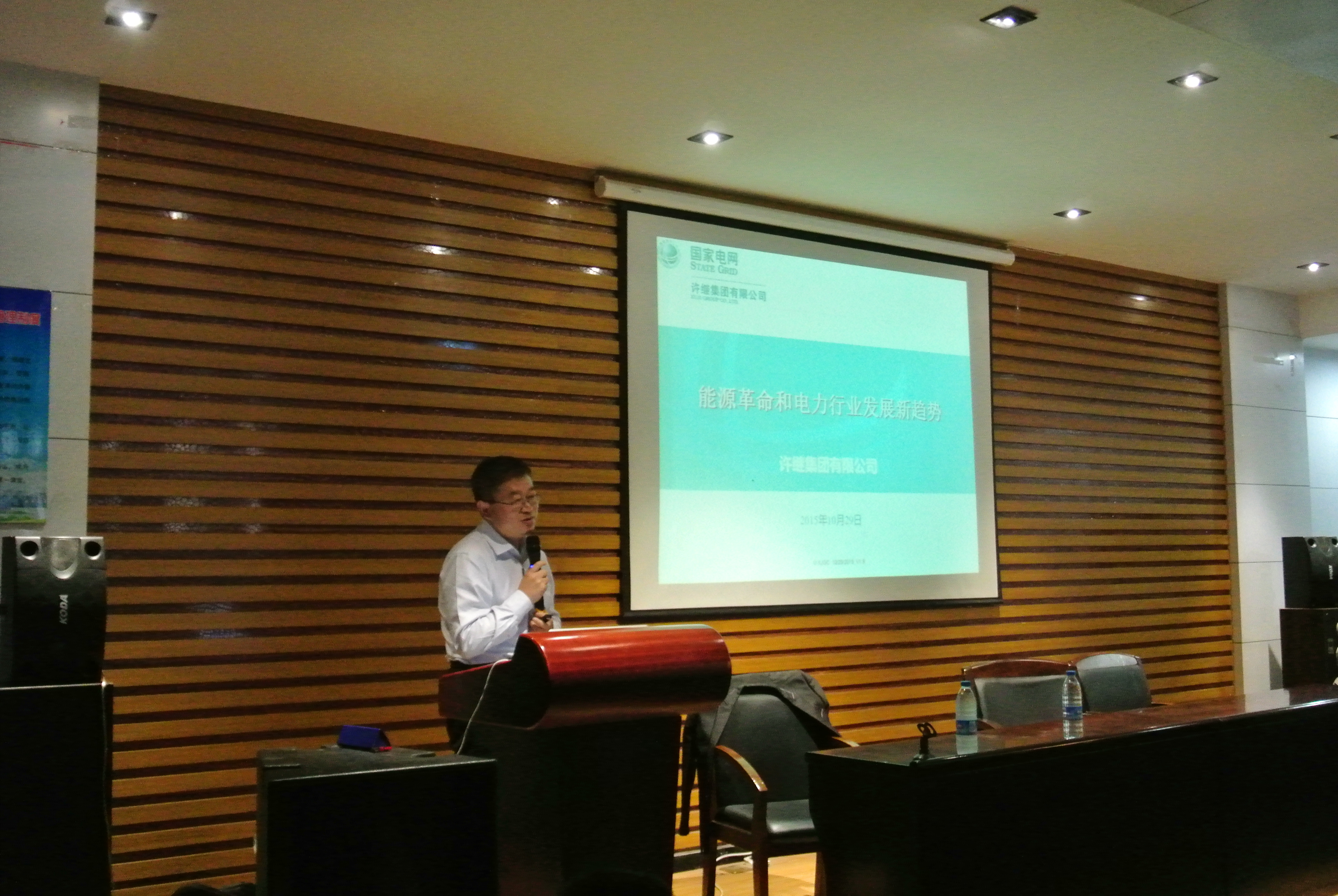 北230多功能报告厅里举行了一场关于能源革命与电力行业发展新趋势的学术交流活动。本次活动有幸邀请了主讲嘉宾张崇见博士,到场的有陈为院长、许继集团经理等。